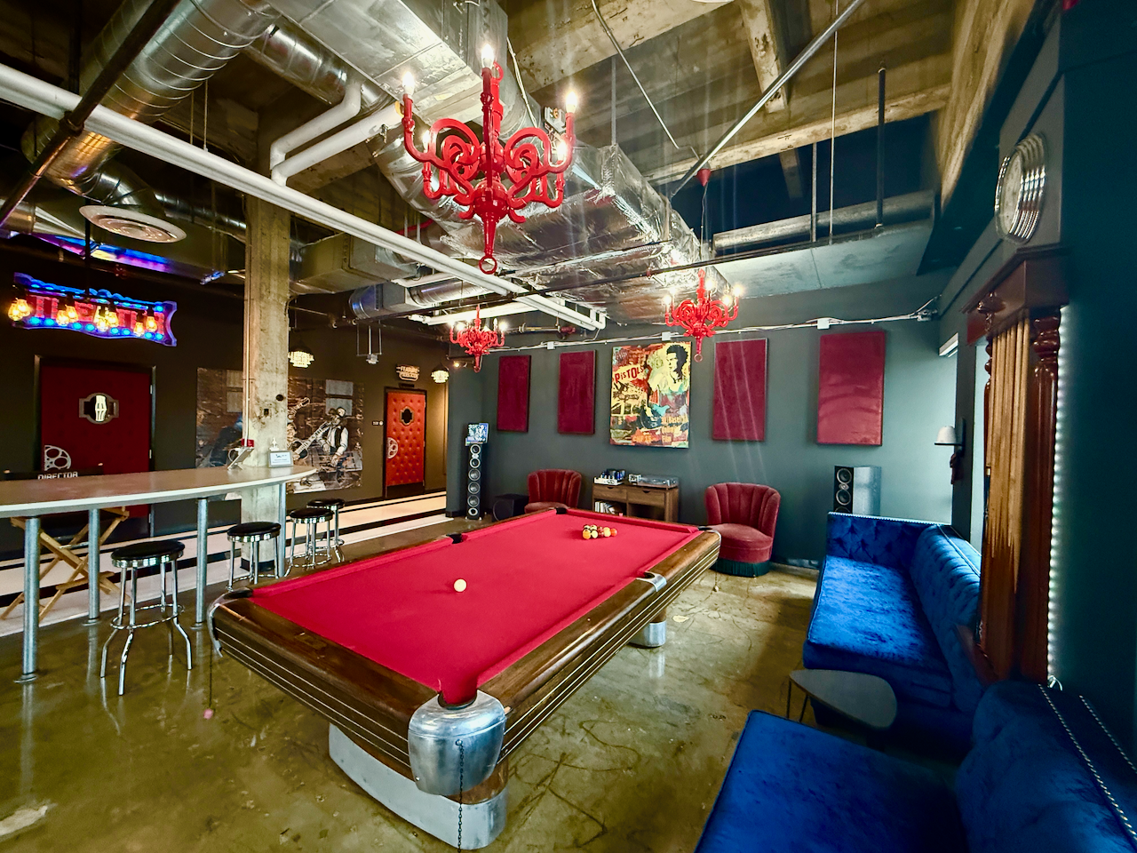 To top it off, the Penthouse Theater Lounge has a 1945 Brunswick pool table, tube amp sound system with turntable. Popcorn and bar area that opens to the spectacular art deco stone balcony with panoramic views of the LA skyline!!